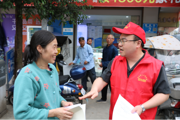 (图为采集员现场宣讲《条例》并调研落实情况)