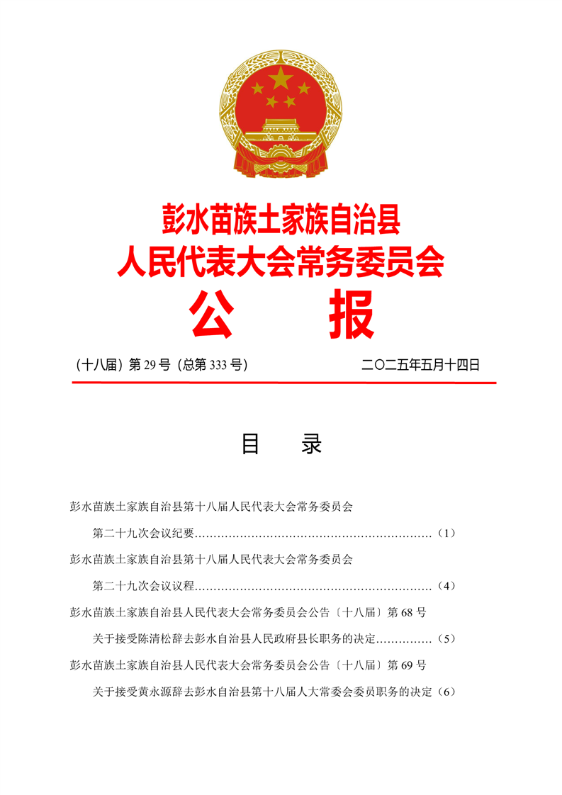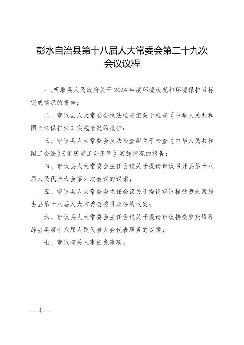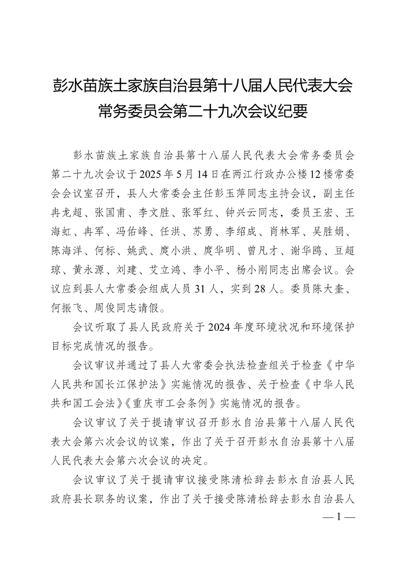 彭水自治县第十八届人大常委会第二十九次会议