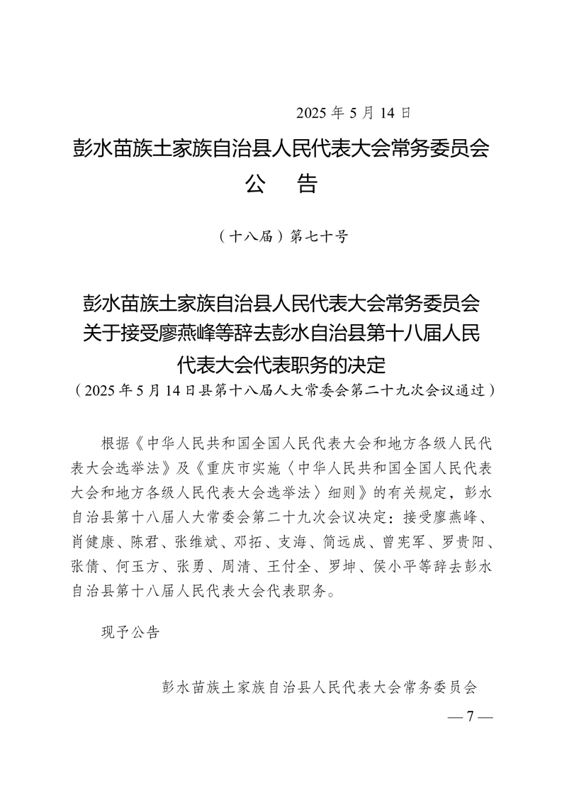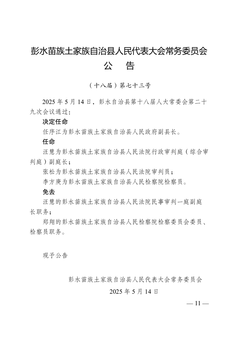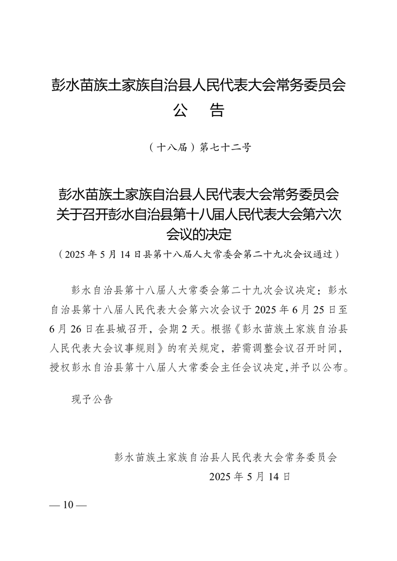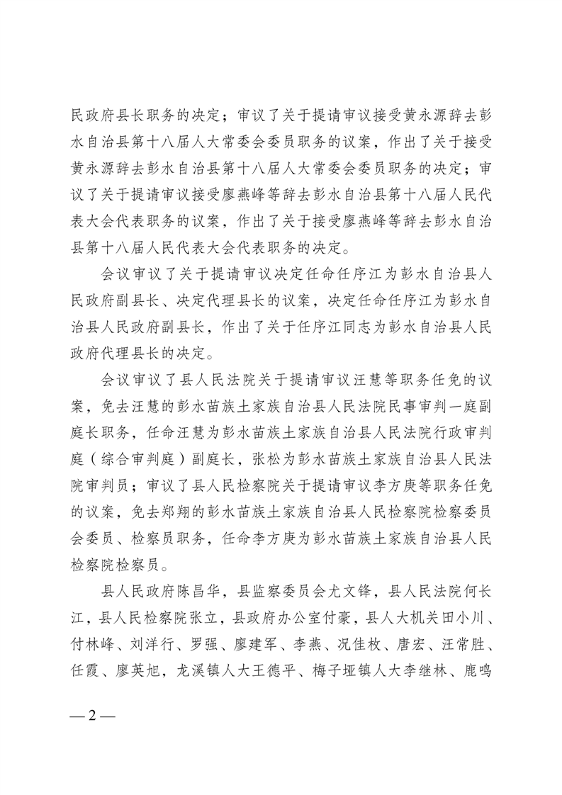 彭水自治县第十八届人大常委会第二十九次会议