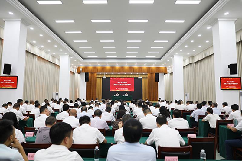 会议现场。李亚军摄8月20日,彭水自治县学习贯彻党的二十届三中全会精神市委宣讲团报告会暨十五届县委理论学习中心组(扩大)第二十九次专题学习会议召开。市委宣讲团成员、市委宣传部副部长陈劲作宣讲报告。县委书记石强主持会议并讲话。县委副书记、县长陈清松主持,县人大常委会主任彭玉萍,县政协主席程途,县委副书记罗道书等县领导参加会议。陈劲作宣讲报告。李亚军摄报告会上,陈劲围绕党的二十届三中全会筹备召开情况